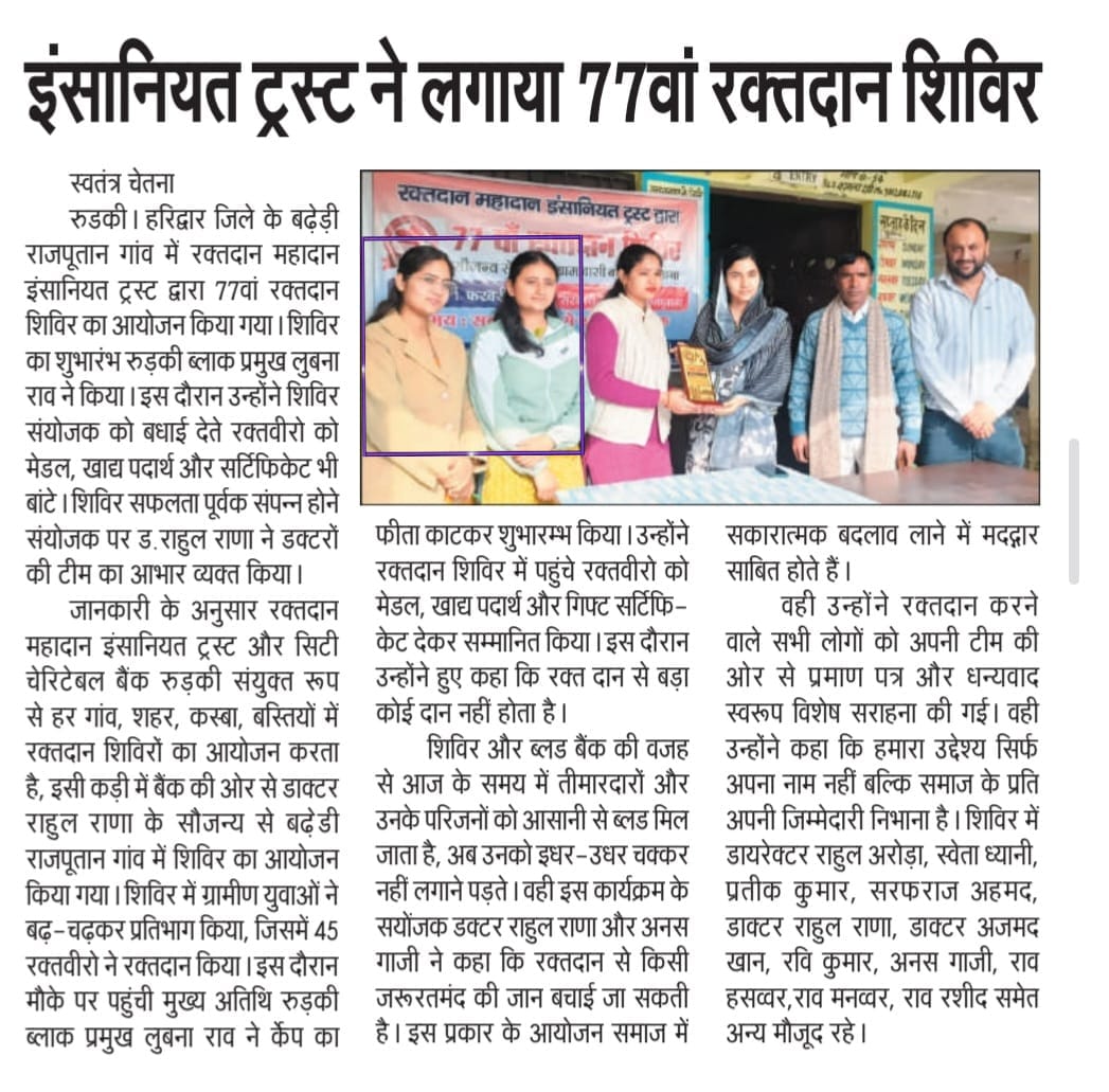 Students of Chanakya Law College actively and enthusiastically participated in the blood donation camp held in Baderi Rajputan village.